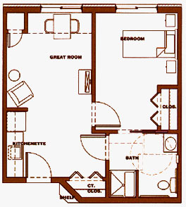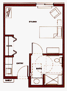 The Studio Assisted Living Plan offers a cozy and efficient living space for those who appreciate simplicity without compromising on quality. This studio layout is designed for ease of movement and accessibility, making it ideal for residents who need a little extra help while enjoying a vibrant community atmosphere.